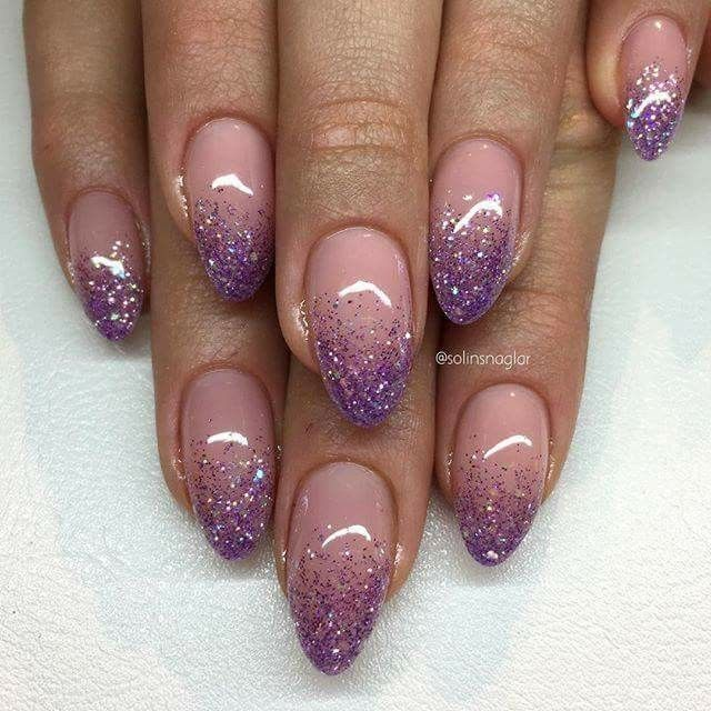 For a magical touch, go for a purple glitter ombré that fades from a deep violet base to sparkling tips. This design works especially well for shorter nails because the gradient effect elongates the fingers visually.
