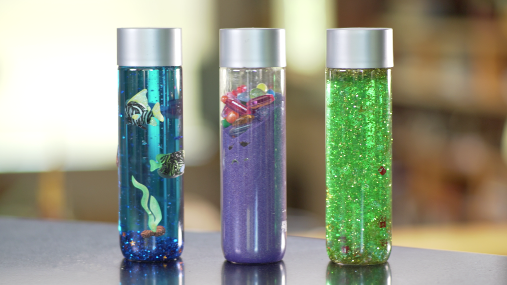 Also called “calm jars,” these glitter-filled bottles help kids manage emotions. Watching glitter settle helps them relax after a long day.