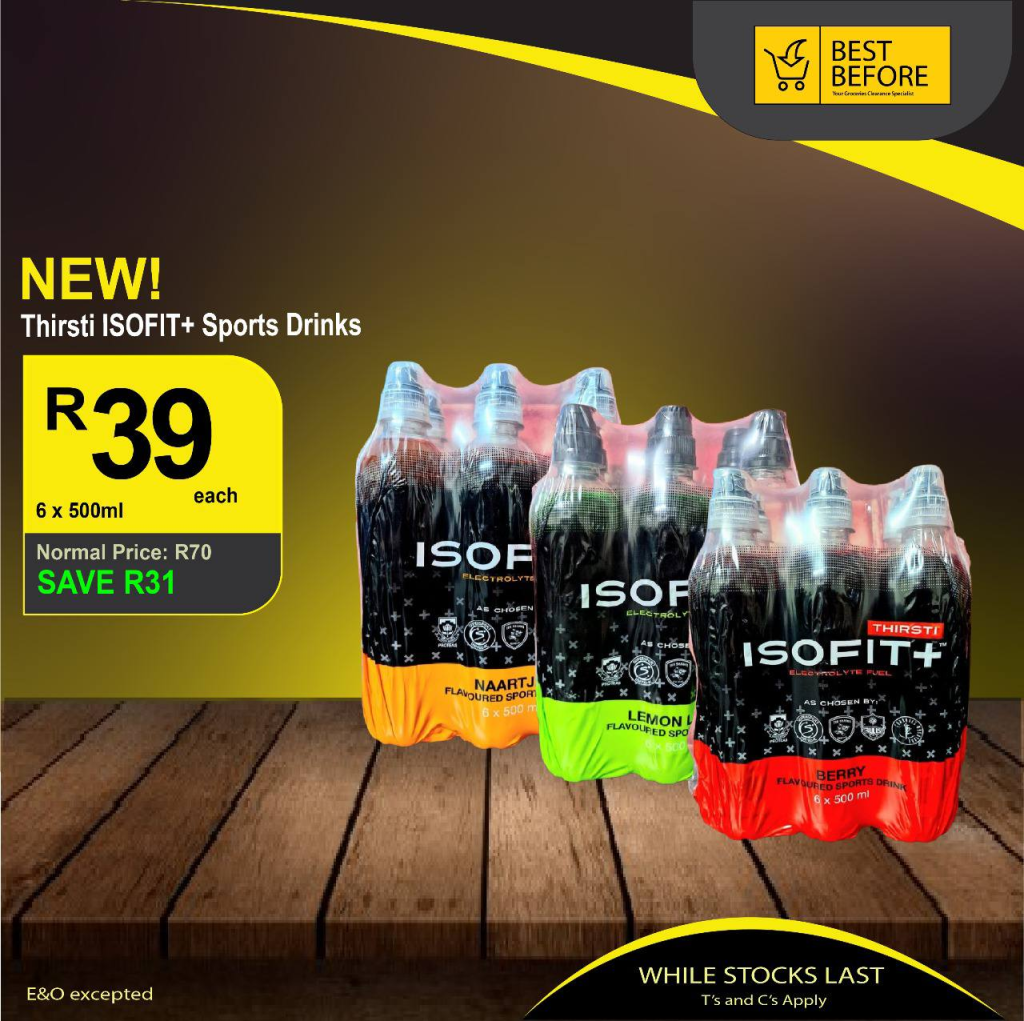 - Thirsti ISOFIT+ Sports Drinks – Was R70, now only R39, save R31.