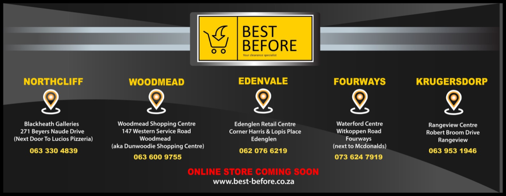 Best Before has a wide range of store locations across South Africa. Whether you’re based in Pretoria, Centurion, Sandton, or anywhere else, there’s a Best Before store nearby where you can benefit from their clearance prices.