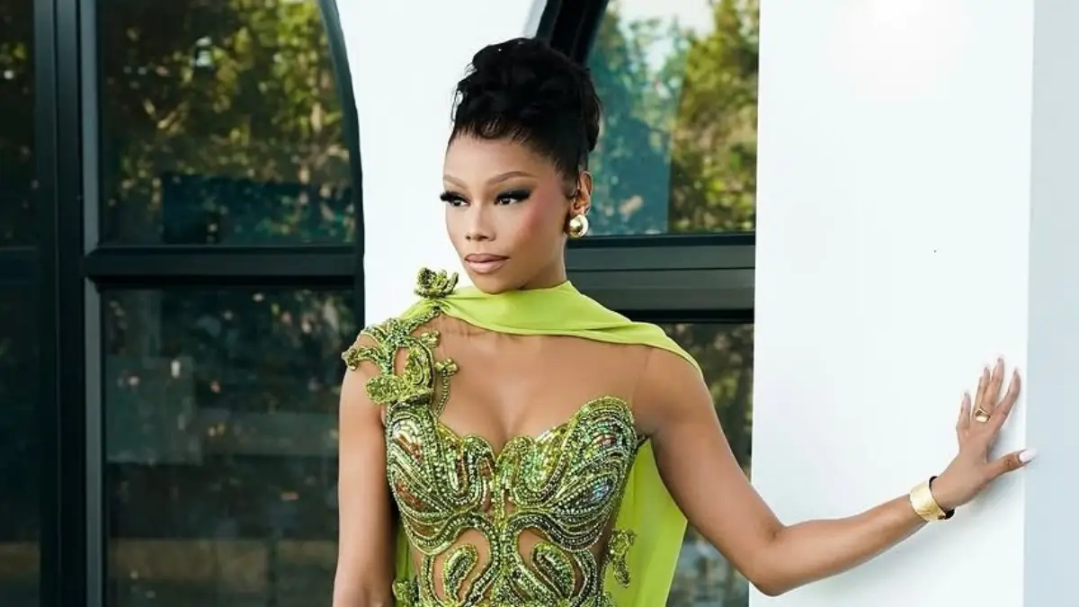 Bonang Matheba kicked off her birthday celebrations with a high-end editorial photoshoot that captivated fans and followers. Dressed in a silk mint green gown by Dona Matoshi, featuring a high slit and an exaggerated one-shoulder sleeve, she radiated elegance and confidence. The look was perfectly complemented by Giuseppe Zanotti silver heels, a metallic Gedebe x Massimo Bonini bag, and bold, signature makeup.