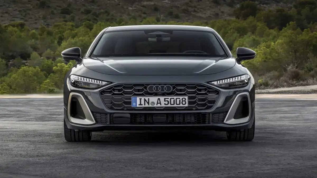 The A5 has a refreshed exterior featuring a wider, flatter SingleFrame grille with a three-dimensional honeycomb pattern. The bonnet is seamlessly integrated, creating a smooth front-end profile. At the rear, a pronounced spoiler lip and a continuous three-dimensional light strip provide a sporty look. The sedan also has a redesigned bumper, dark diffuser, and rectangular exhaust outlets.