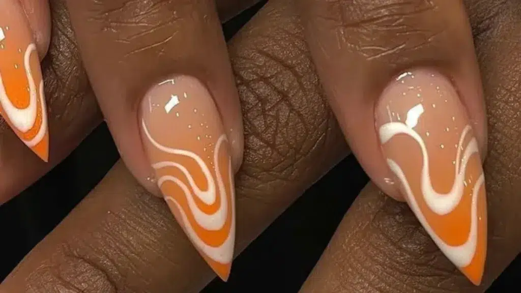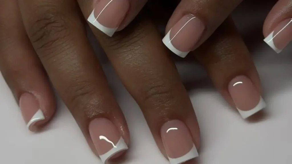 Simple black or white line art on any colour nails offers a modern, minimalist style that’s easy to maintain.