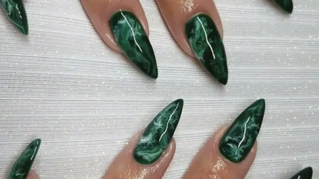 Deep forest green nails evoke winter forests and nature. This shade is rich and perfect for the season.