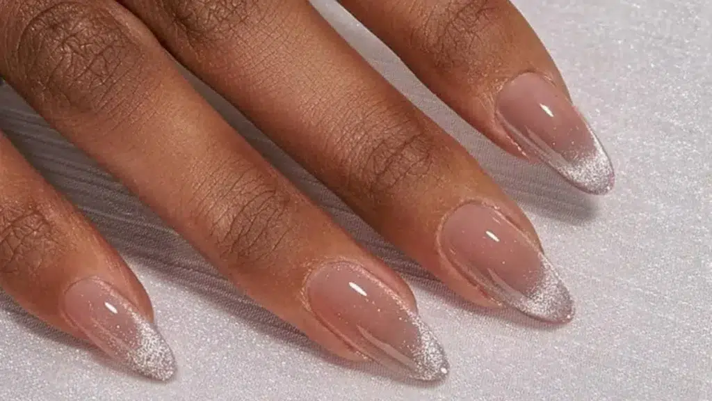 Start with a solid colour base and fade glitter from the tips down. This gradient effect adds sparkle without overwhelming your nails.
